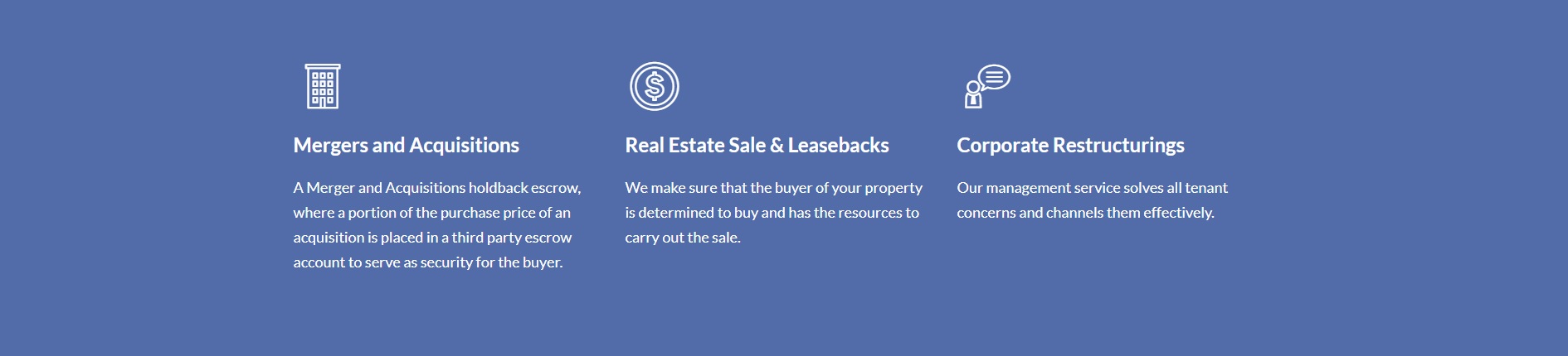 As an experienced Escrow Company in business since more than 20 years, Management and Capital LLC supports a broad range of asset types: cash, property, intellectual property, securities, contracts and other collateral. Our success is built upon our exceptional ability to get transactions finished properly.